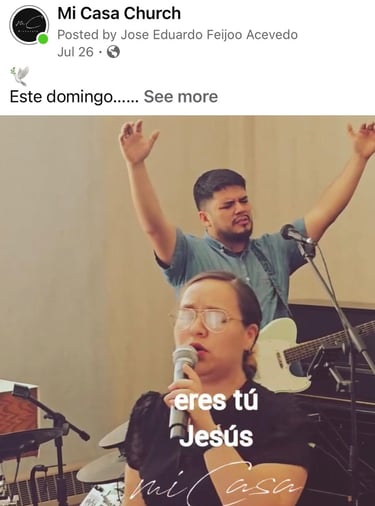 Visitanos y comparte con nosotros un servicio de adoración Profundo y cálido, en un espacio de brazos abiertos para ti y los tuyos.